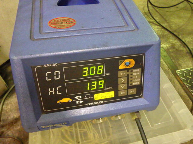 排気ガステスターで排ガスの濃度を調べたところCOは規制値に収まっていました。一時的にカブってCOが濃くなってしまったのかもしれません。