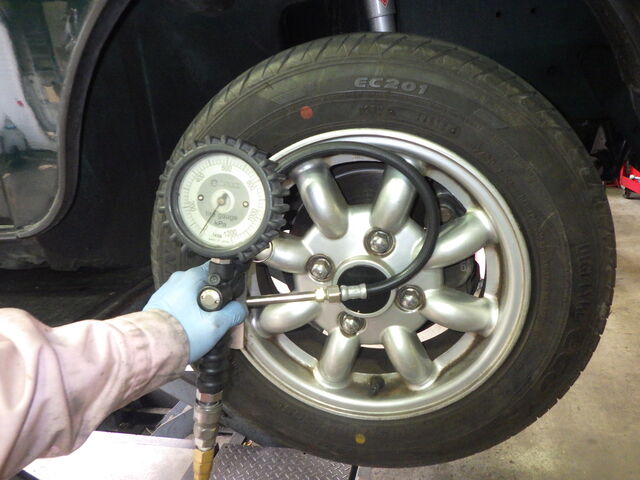 暖気している間に、タイヤの空気圧は220kpに合わせておきました。