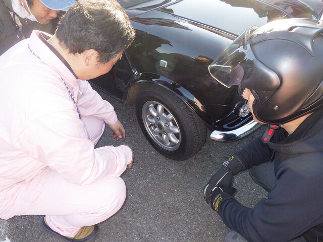 ITK選手は記録更新を目指しタイヤの空気圧調整。