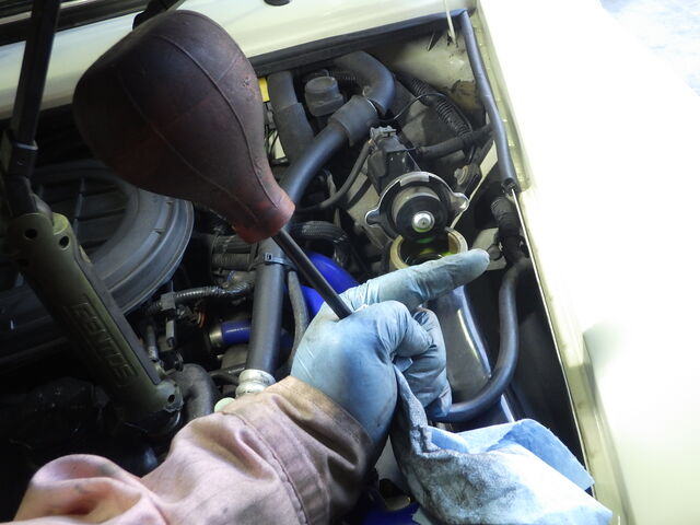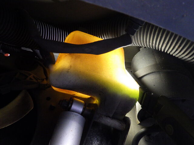 ラジエーターの内圧が上がるとここへ流れてきて下がると戻る機構。