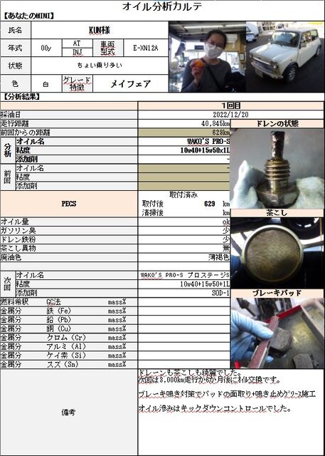 今回が初オイル交換でしたのでオイルカルテを作りました。