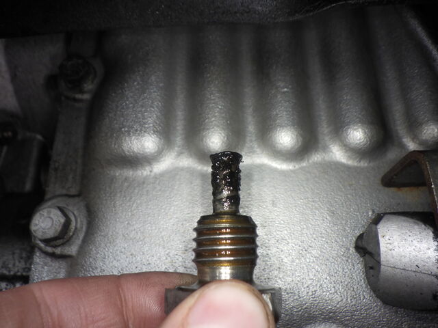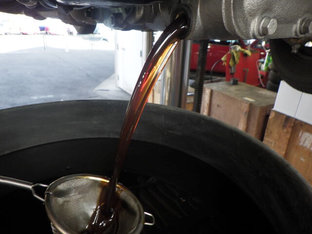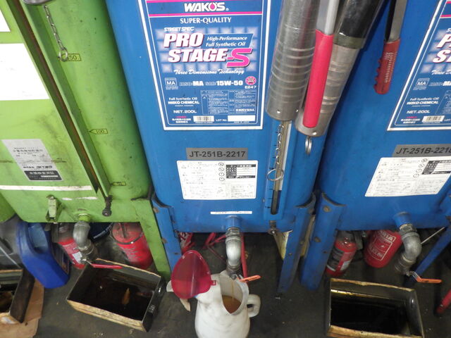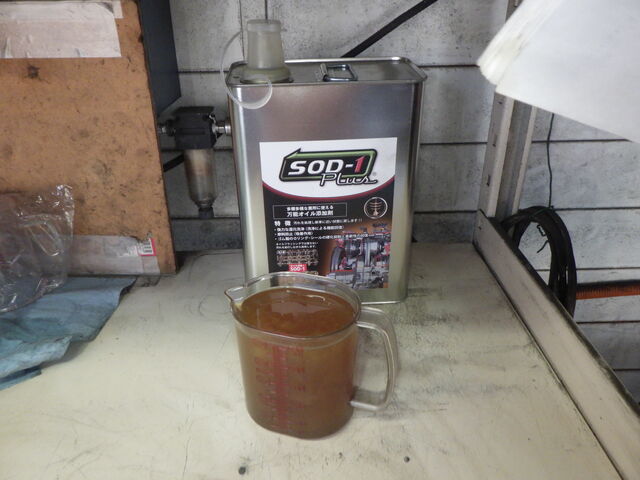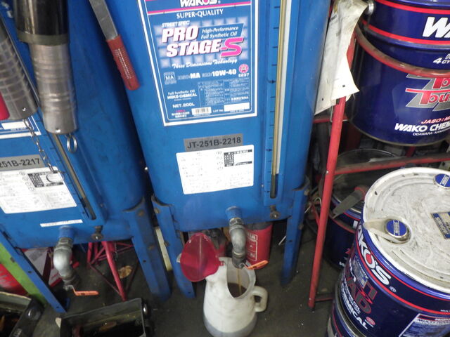 AT車なので、トルクコンバーターに残留してしまう古いオイルを考慮して、高粘度オイルも混ぜて入れます。