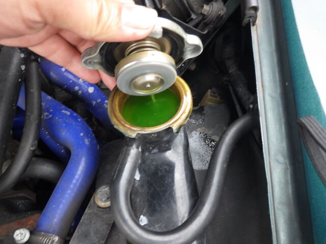 ラジエーターに洗浄剤を投入。