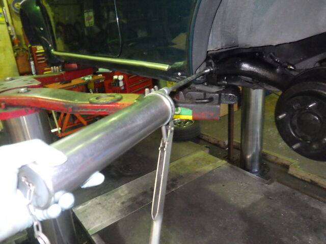 車高が低く、最低地上高は足りていません。車検に向けて車高を上げておきます。