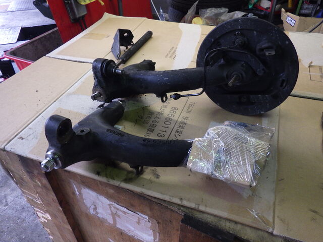 ブレーキなどを分解して新しいラジアスアームに組み替えていきます。