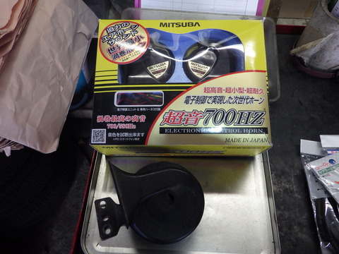 ホーンは工場出荷時にはエンジンルーム内に付いていたはずですが、その位置をクーラーコンプレッサーに取られてしまったため、左インナーフェンダーに追いやられています。