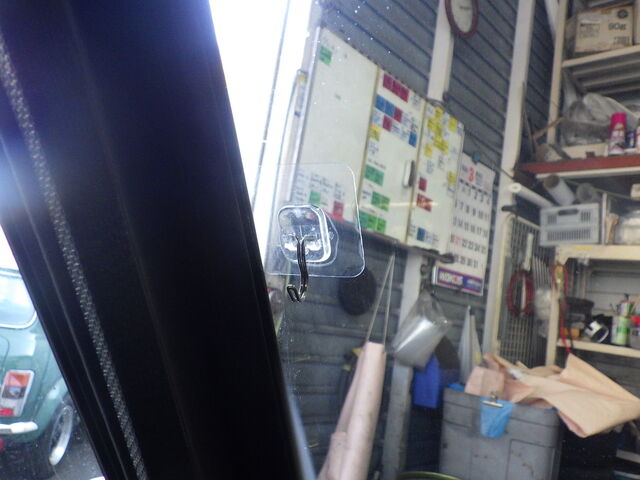 フロントガラスのフックは陸運支局で外されてしまうかもしれません。