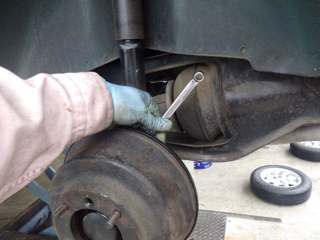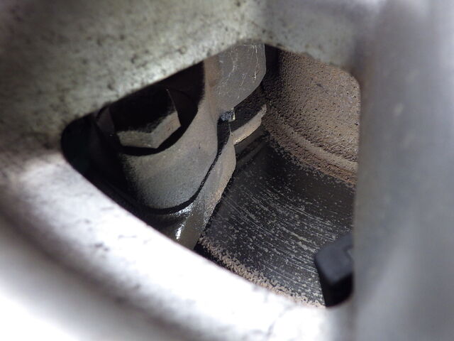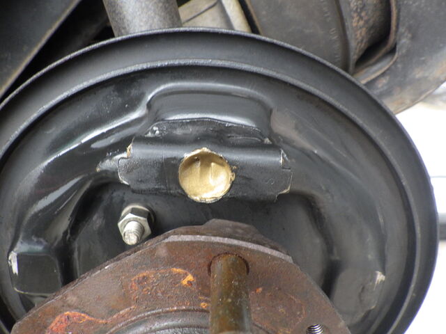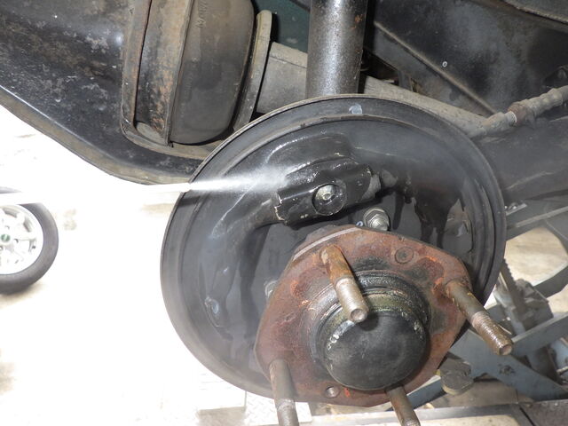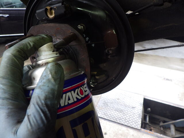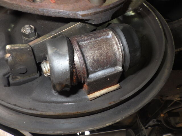 続いて、リヤのホイルシリンダーを点検します。ブレーキフルード漏れがあります。目に見えるほどフルード漏れがあります。