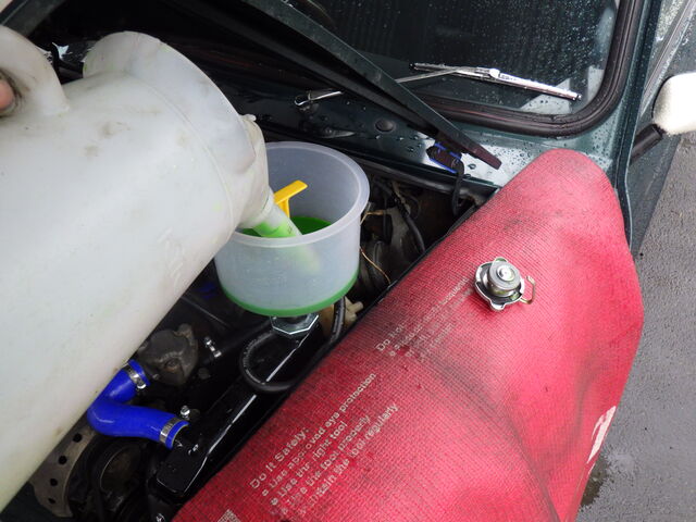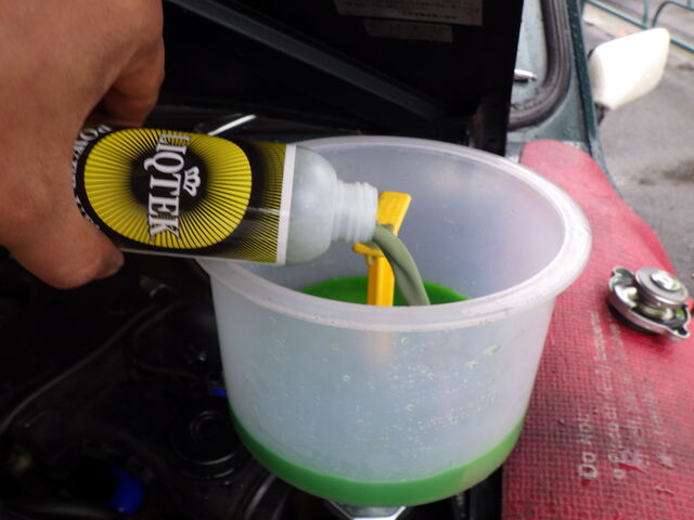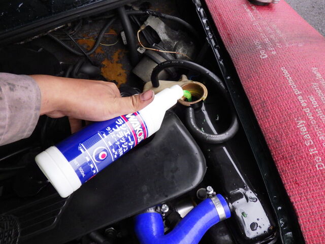 しばらくしてラジエーターに勢いよくクーラントが流れ込んできました。このときの温度は80℃