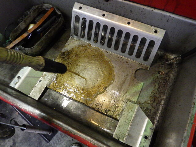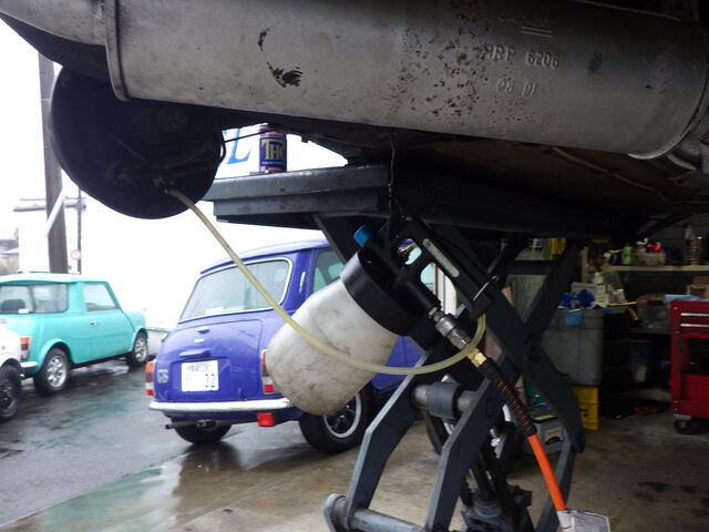 洗浄剤が十分行き渡ったところでクーラントを抜いていきます。