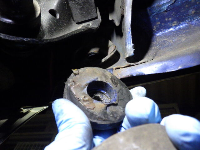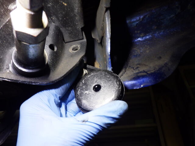 作業が終わり完成検査をしていたところ、サブフレームマウントの丸マウントが左右とも剥離しているのを発見、、、