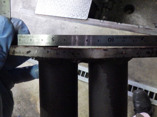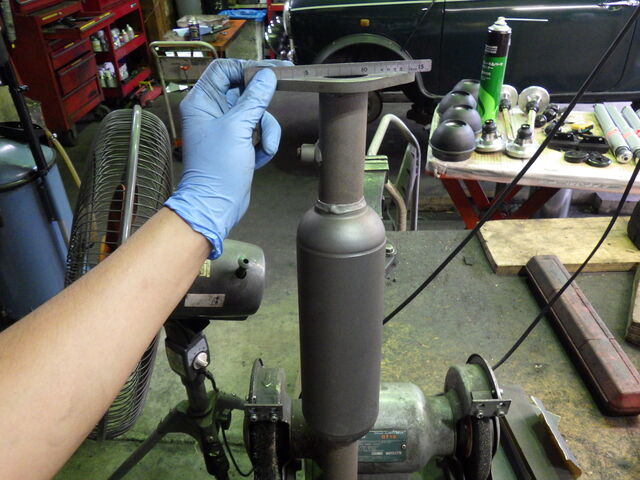 外したダウンパイプに真っ直ぐな定規を当てて歪みの確認。