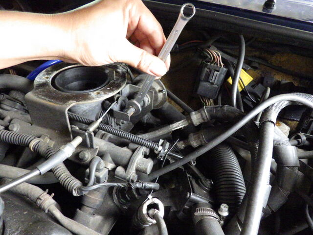 この車両はアイドルアップがインマニ横に装着されているのでこちらを調整。