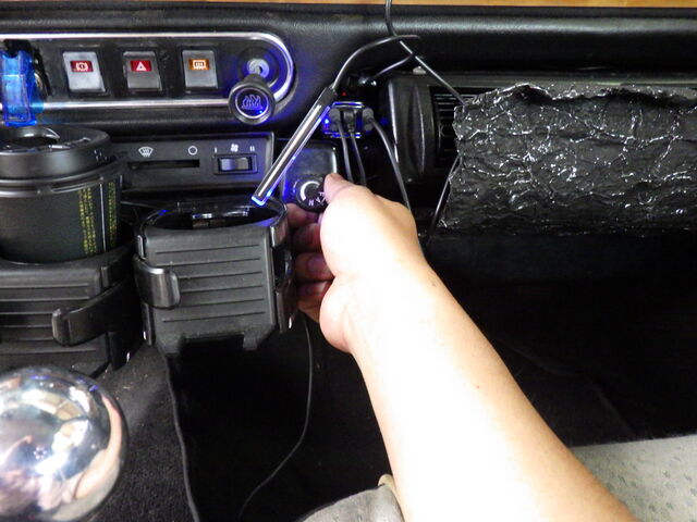 調整を行いクーラーによるアイドルアップ時のエンジン回転数が1100rpm付近になるよう調整しました。