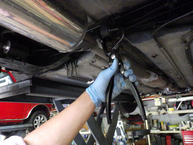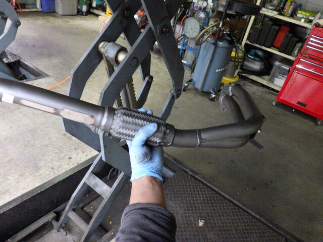 排気漏れを直すためマフラーからダウンパイプまで取り外していきます。