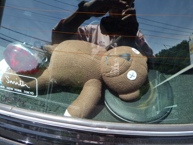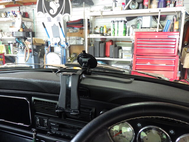フロントガラスについているスマホホルダーは車検不適合なので車検中は外しておきます。