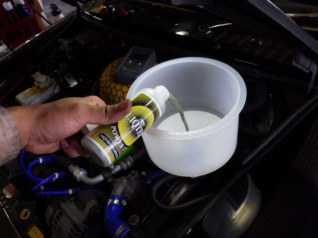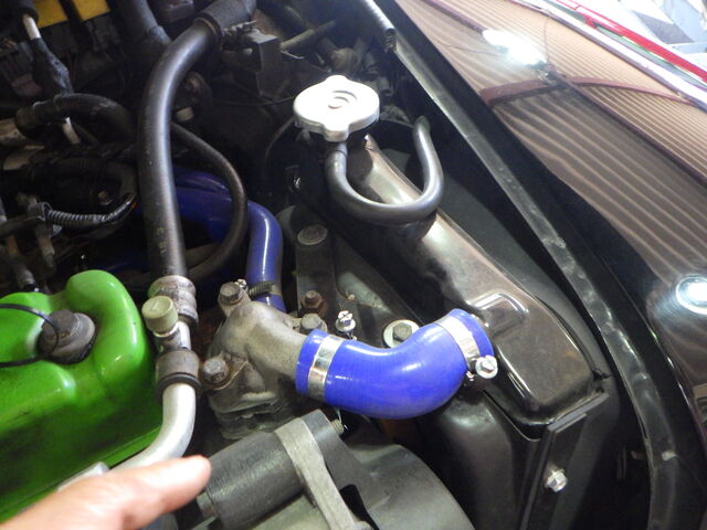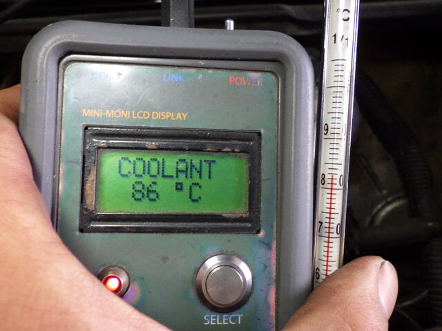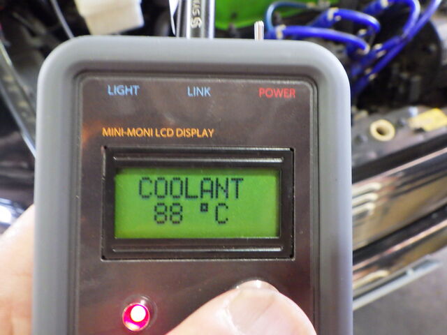 しばらくしてラジエーターに勢いよくクーラントが流れ込んできました。このときの温度は88℃でした。サーモスタットの開きも良好です。