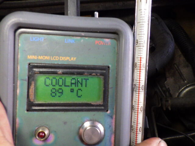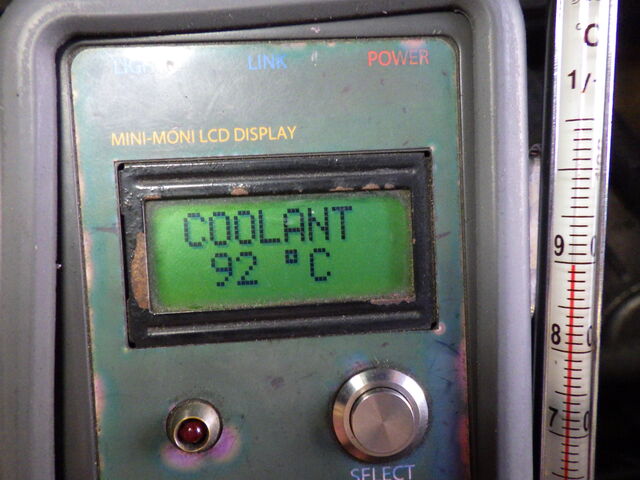 電動ファンは92度で動作を開始。水温センサーの精度は2℃差、センサーの精度は良好です。。