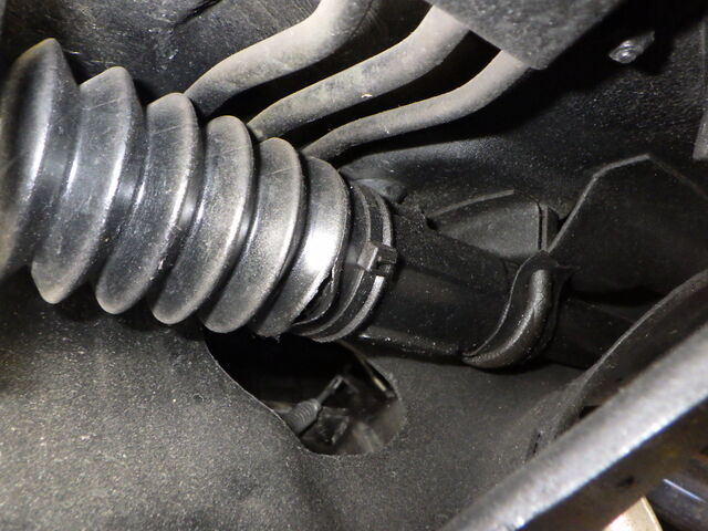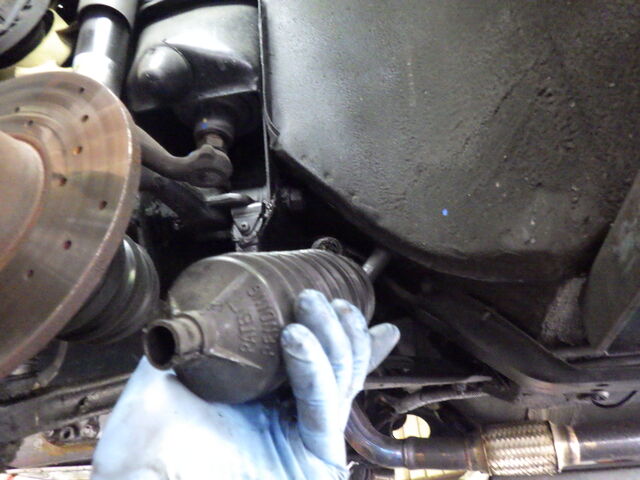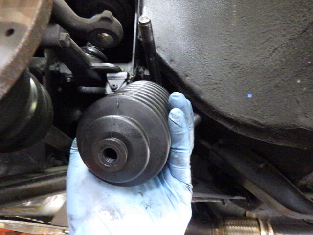 ラックブーツも交換します。穴の空いてしまったラックブーツを取り外し。