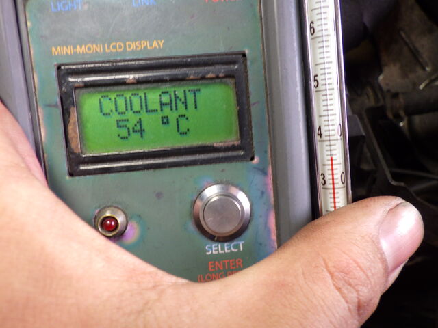 エンジン側のミニモニとラジエター側の温度計に差があります。サーモスタットの閉じは良いですね