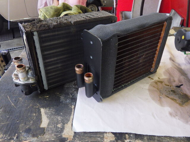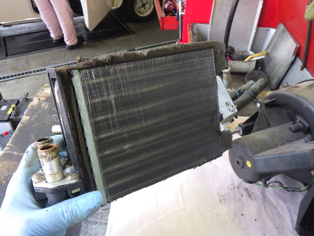 ヒーターユニットからヒーターコアを取り外し。ヒーターコアはやはり漏れていました。