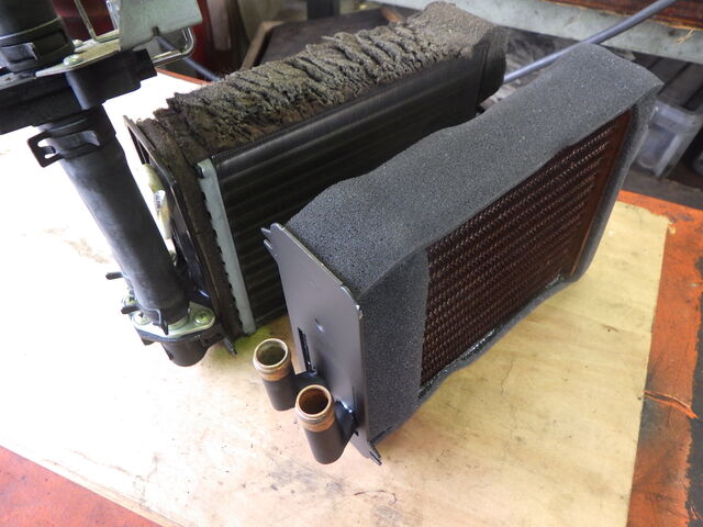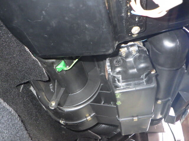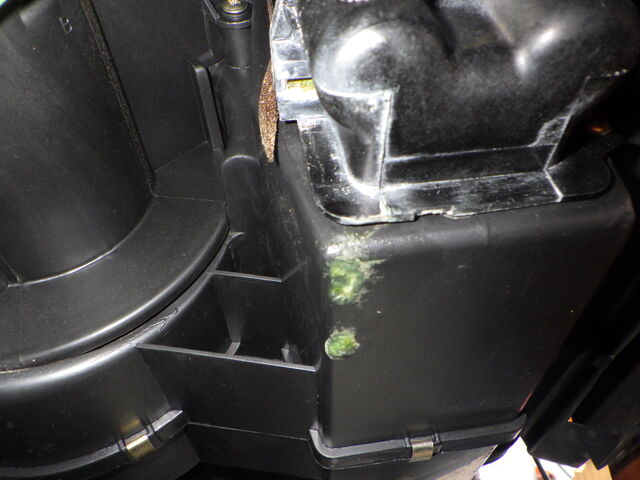 ヒーターユニットの下に緑色の液体が見えます・・・