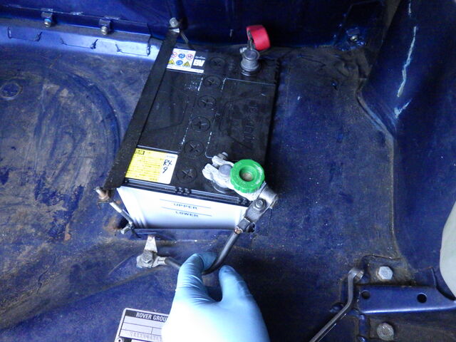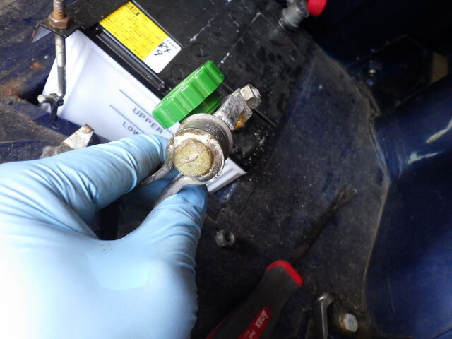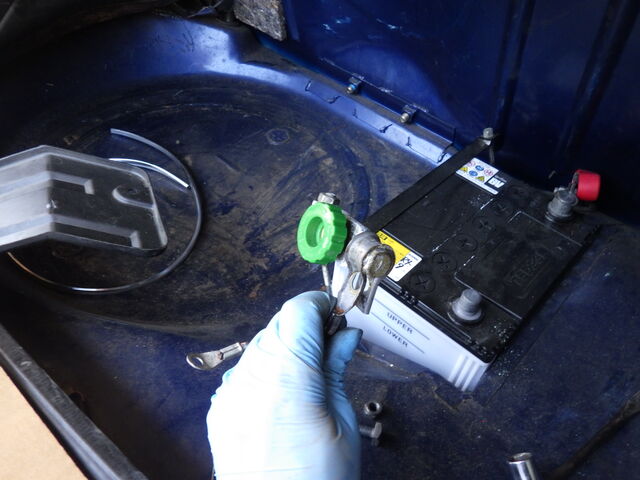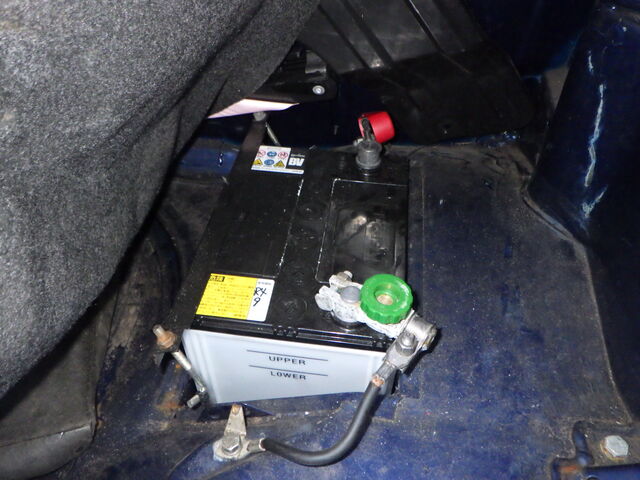バッテリーを見ると・・・ マイナス側にカットオフスイッチが付いてました。