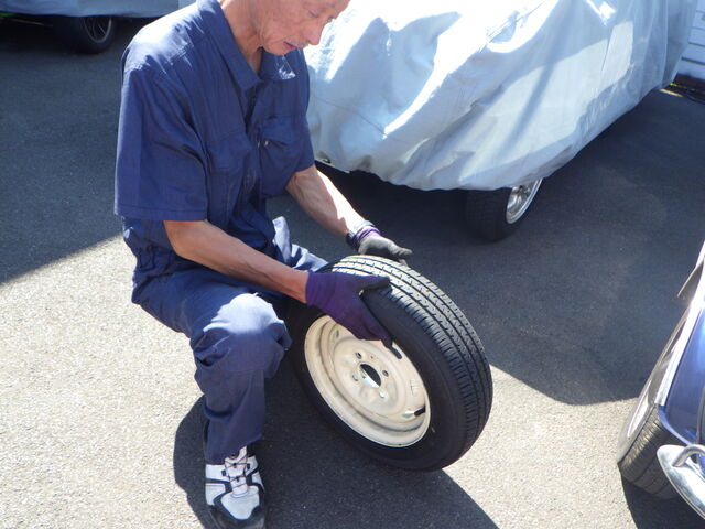 リヤシートにタイヤ置いておくのでエア漏れの修理もよろしく・・とのことです。