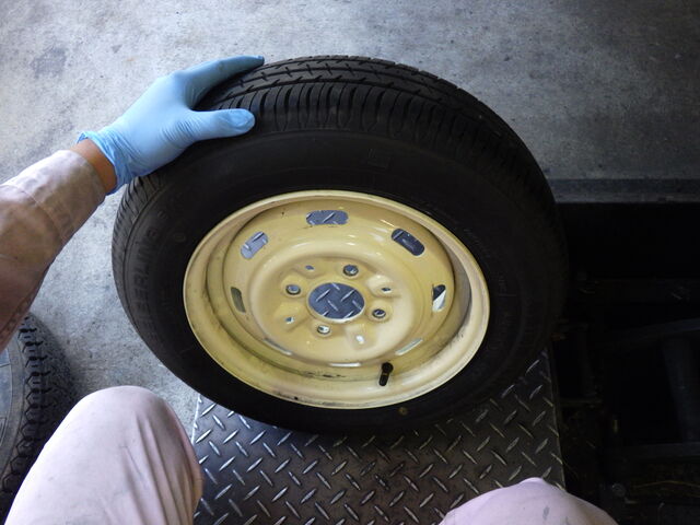右リヤのタイヤの空気が減ってしまったのでスペアタイヤと交換して