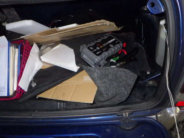 トランク内に見えるハンディバッテリーでジャンピングしたようです。