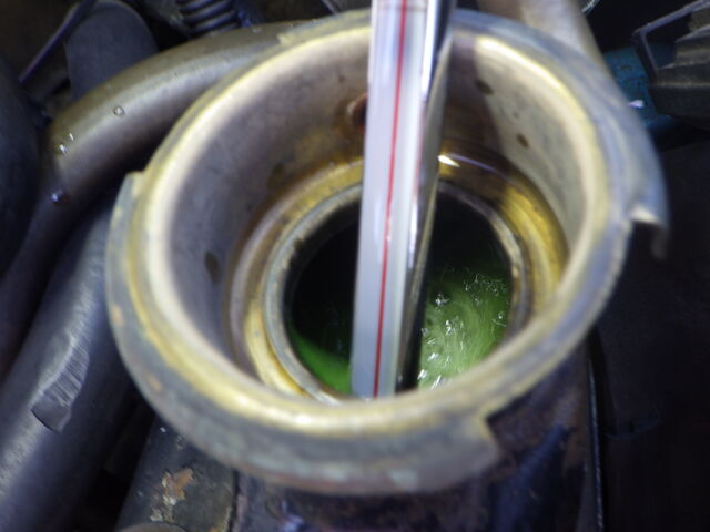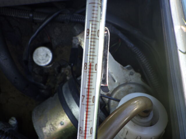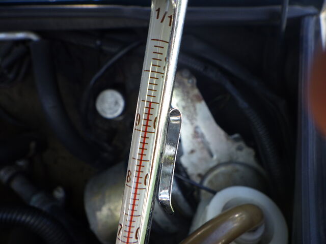 ラジエターに挿した温度計は43℃