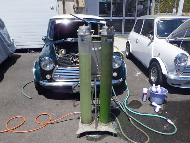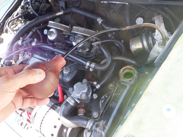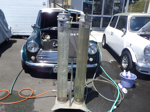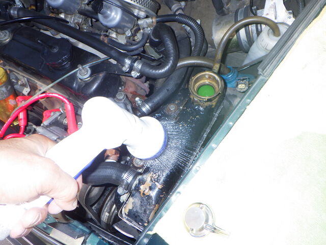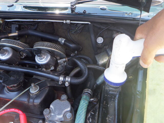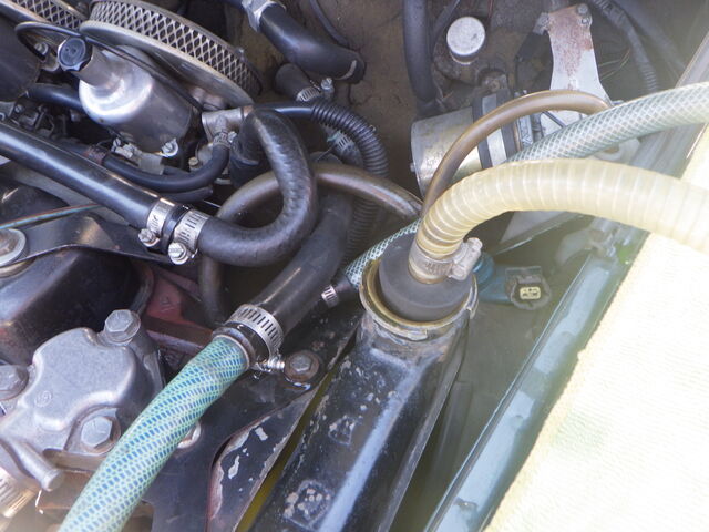 ラジエター内の水は逆流で吸いだします。
