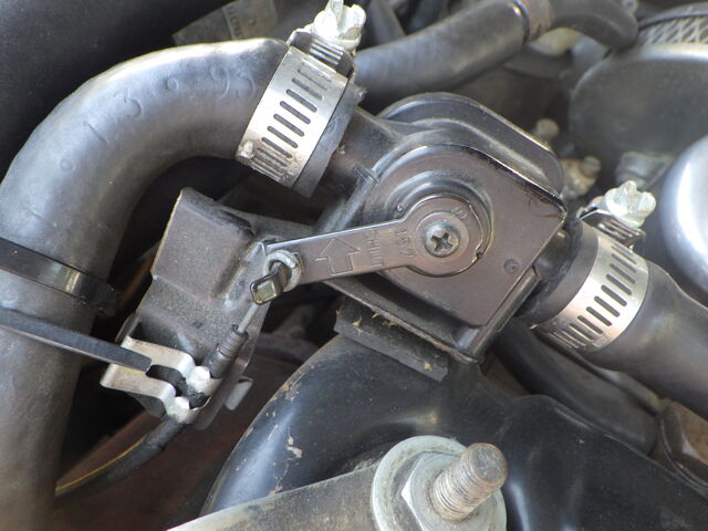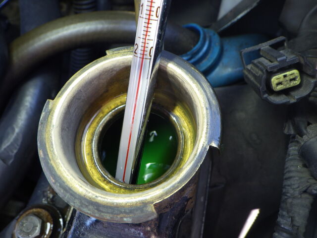サーモスタットの密閉テストが必要なので水掛けて冷やしてから・・・