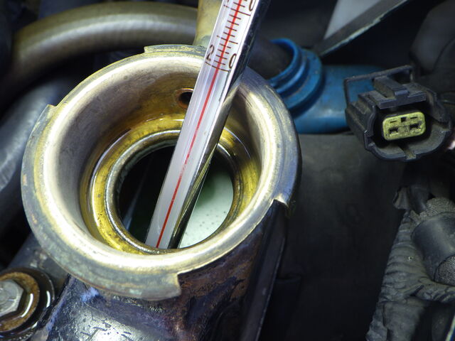 走ってきたばかりでまだエンジンが熱くサーモスタットは開いてそうです。