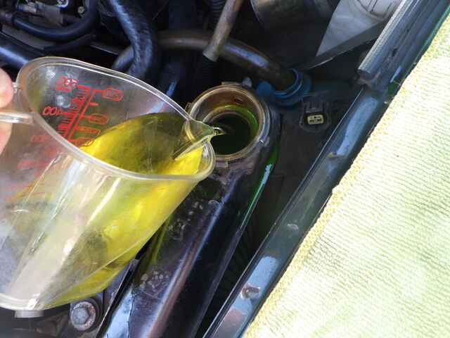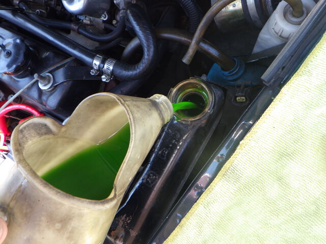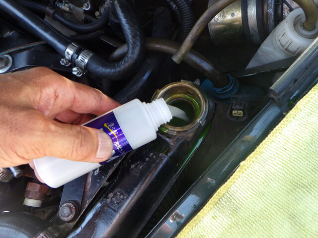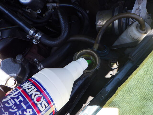 ラジエターフラッシュ入れてエンジン始動で洗浄開始