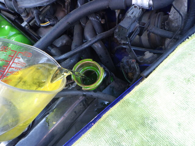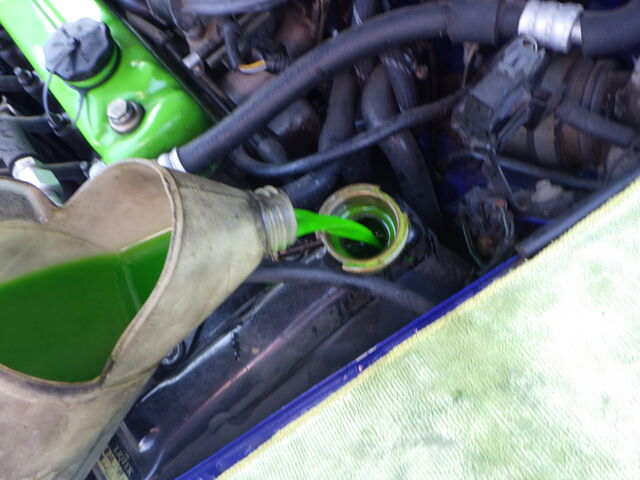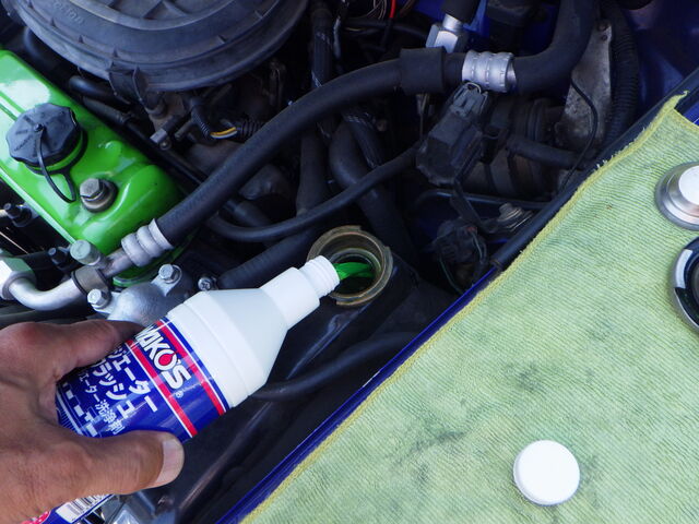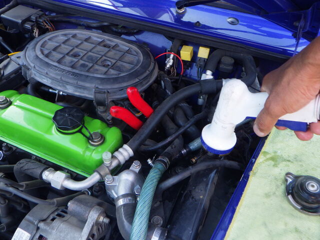 ラジエターフラッシュ入れてエンジン始動して洗浄開始