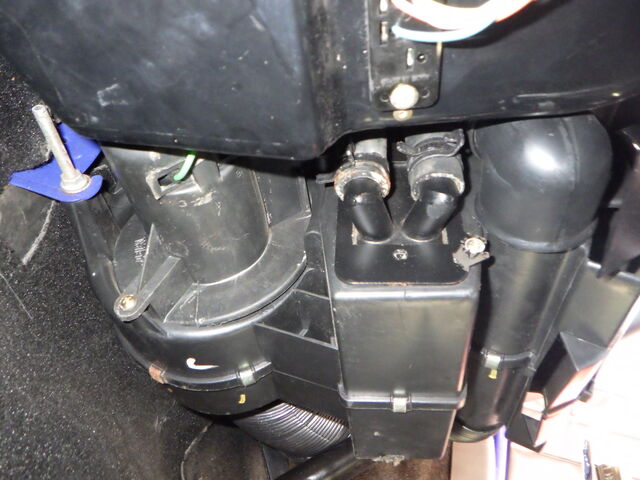 次にバイパスホースをクリップで止めてヒーターコアだけから逆流で吸い上げます