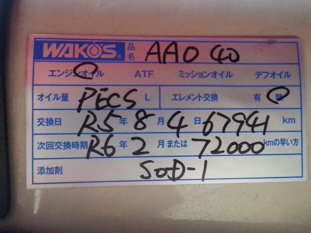 次回のオイル交換は来年の2月か72,000㎞です。