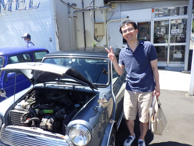 OIY様のミニは1300ccのキャブクーパー。エンジンルームはクーラー付きでみっちりしています。