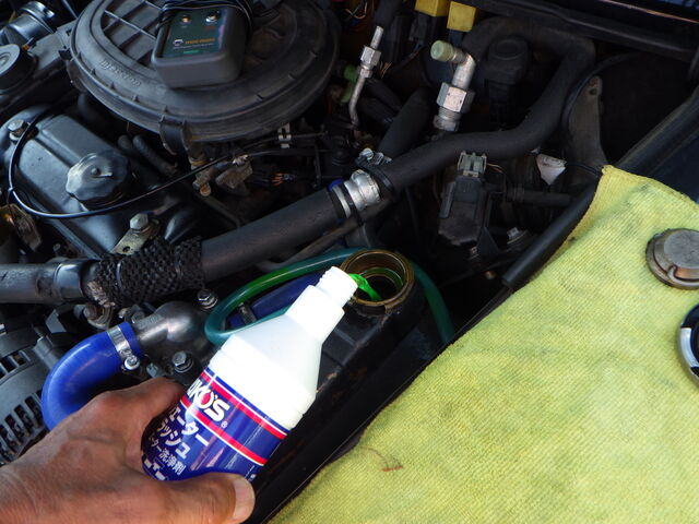 ラジエターフラッシュいれてからエンジン始動で洗浄開始