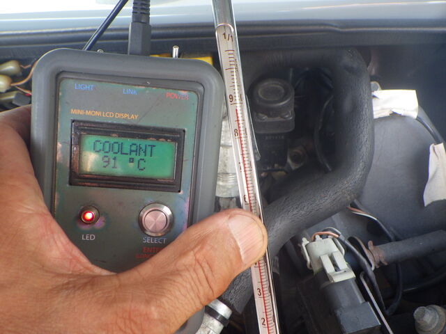 水温センサーとラジエターに挿した温度計の比較しても水温センサーの温度精度は良好です。