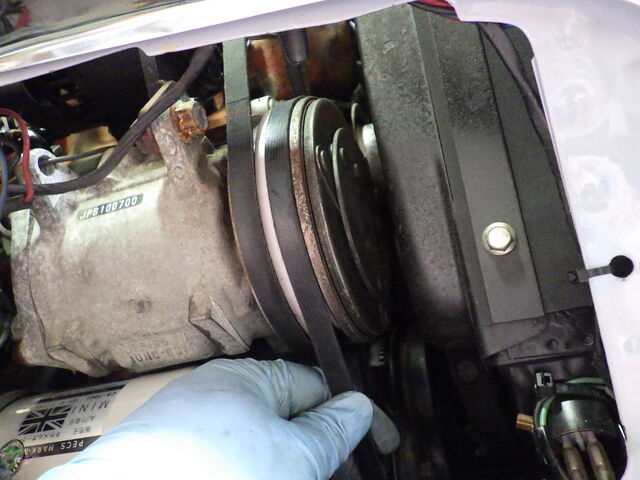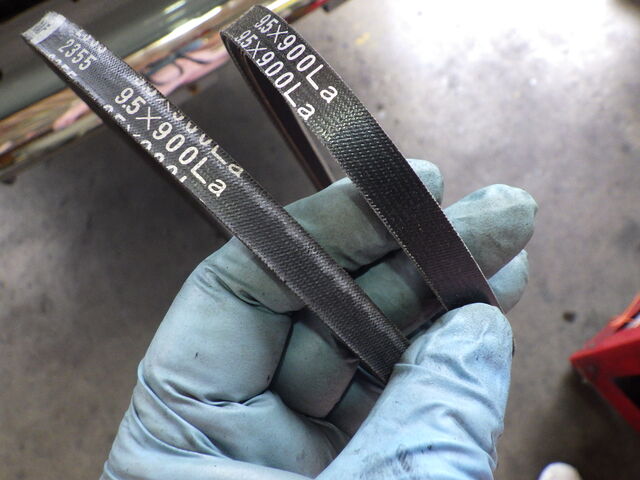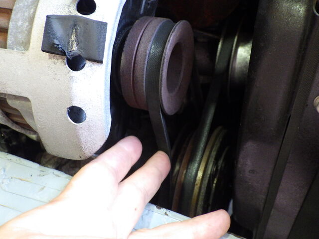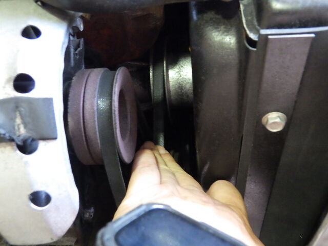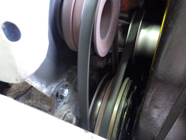コンプレッサーとオルタネーターをつなぐベルトがノビノビユルユルです。