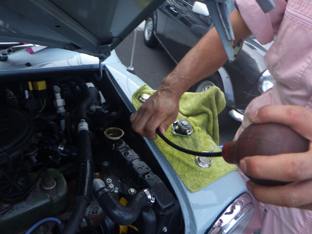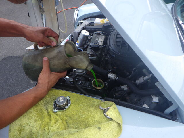 サーモスタットや電動ファンの作動温度、そして水温センサーの温度精度確認のスリーチェックだけの予定でしたが・・・