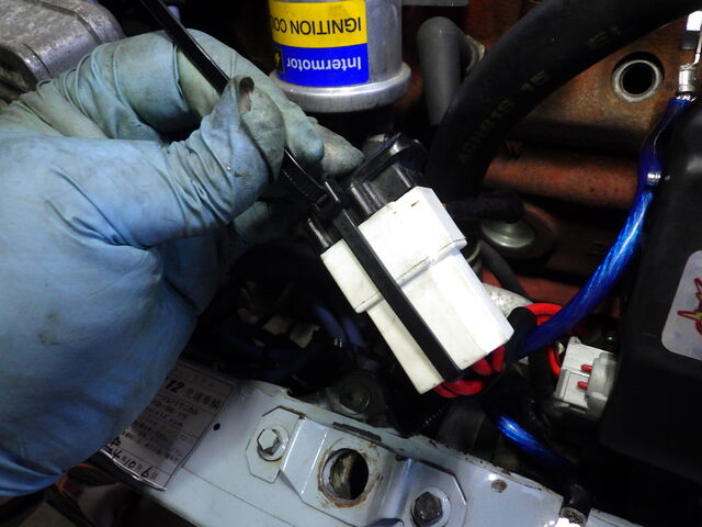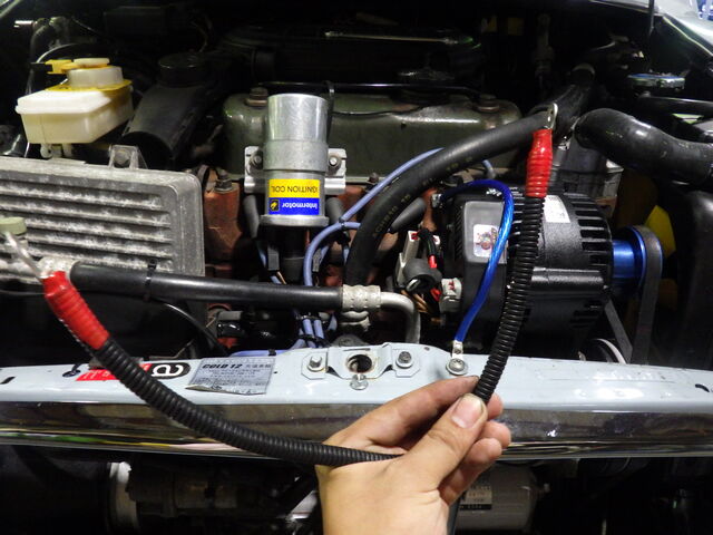 オルタネーターとバッテリーからの+配線をバイパスするプラスチャージラインを取り付けます。
