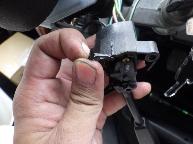 どうやらワイパースイッチの一部がハンドルを回したときに回転部分と接触しているようです。