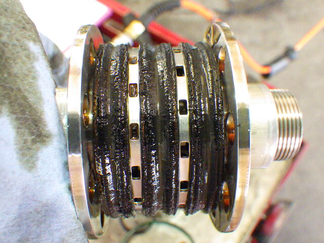 プラスチャージラインオルタネーター側には特殊な鉄箔を巻います。このようにするとオルタネーターで発電したパワフルな電気がより勢いよく送れるとマスターが言っていました。