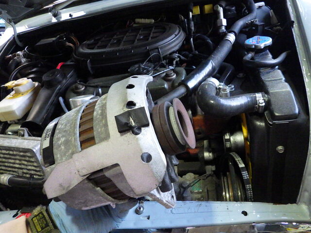 オルタネーターがボンネットに干渉するので一つ短めにしました。