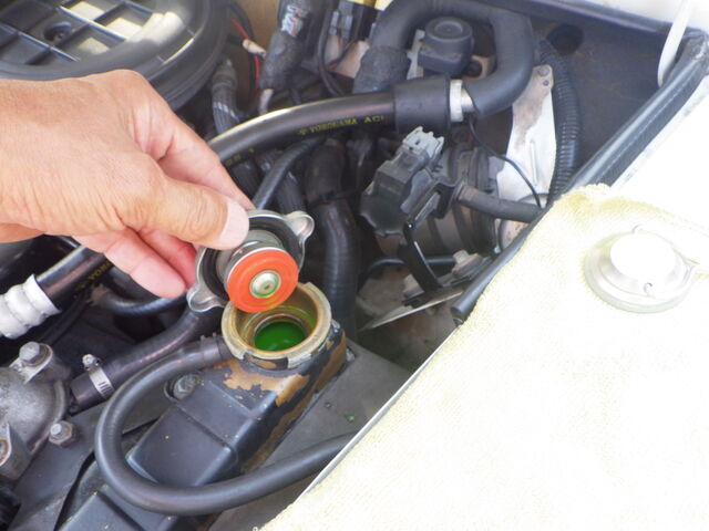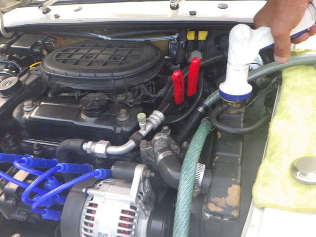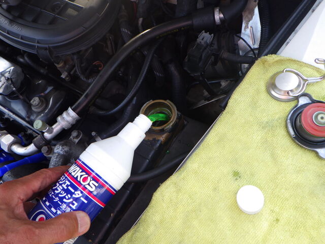ラジエターフラッシュいれてエンジン始動で洗浄開始