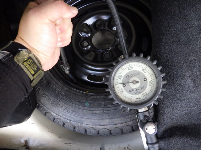 スペアタイヤは300kpa入れておきました。