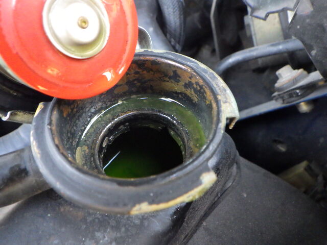 水面がラジエター口から2㎝位のところで安定してる場合は漏れはないけどリザーブタンクとの呼吸ができてない可能性あります。